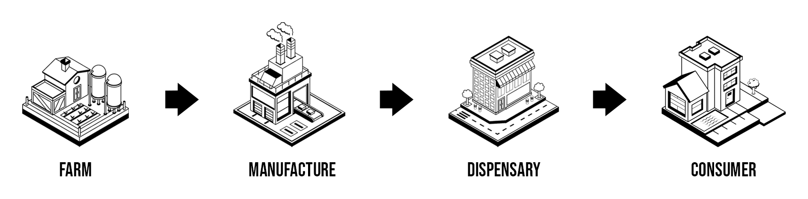 The cannabis supply chain is the entire network of businesses and the transportation between them, that it takes to get a cannabis product from the farm to the consumer.